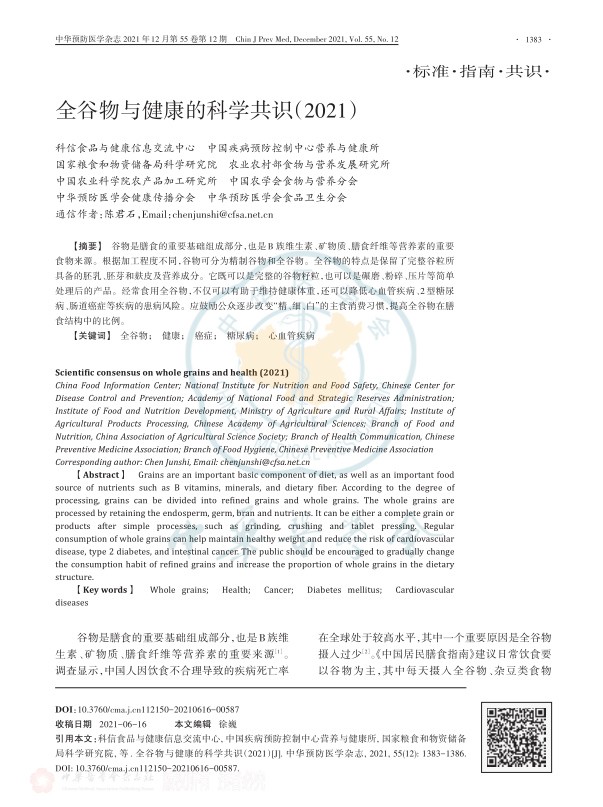 全谷物與健康的科學(xué)共識(2021)